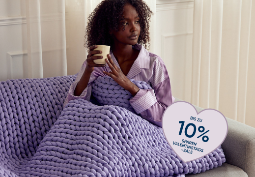 “Sie sieht nicht nur edel aus, sie fühlt sich auch so an” “Innerhalb von zwei Wochen waren die ersten 800 Decken verkauft.” “In den USA längst ein Star, jetzt auch bei uns erhältlich” “Das erhöhte Gewicht hilft nicht nur bei Nervosität und Ängsten – laut Studien steigert es auch die Konzentration des Schlafhormons Melatonin um 30%”